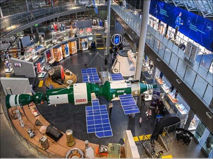 • Экспозиции с подлинными космическими аппаратами, ракетными двигателями и скафандрами