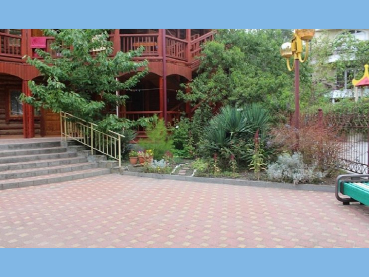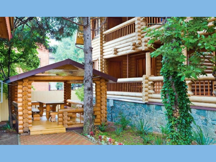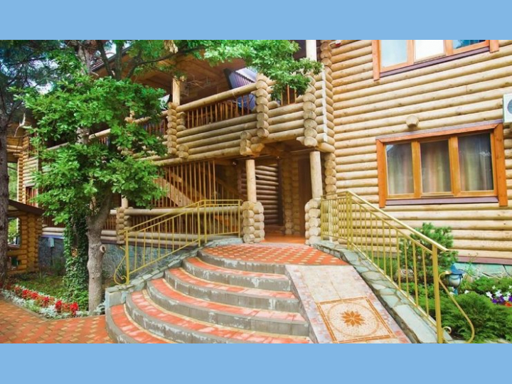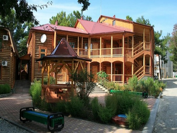 Гостевой дом представляет собой 2-этажный деревянный коттедж с просторными террасами, построенный из хвойных пород дерева, расположен на зелёной благоустроенной закрытой территории. Для размещение гостей представлены: