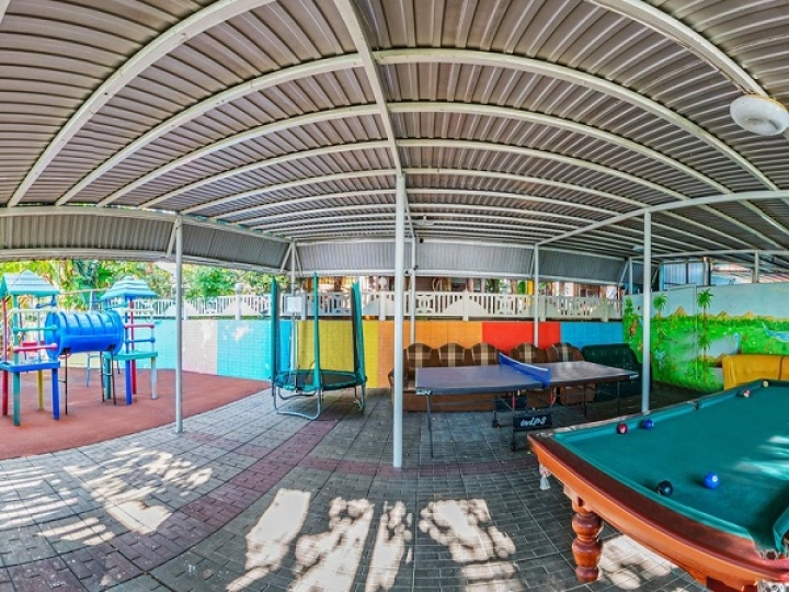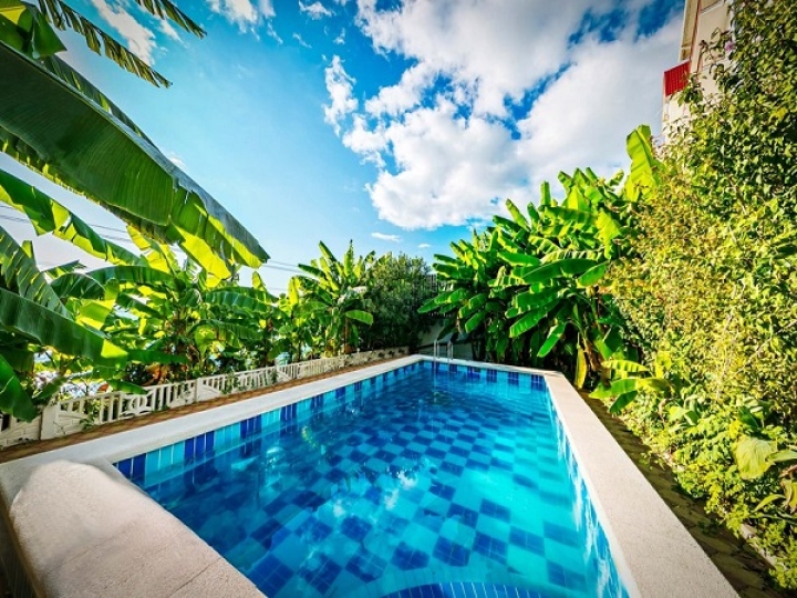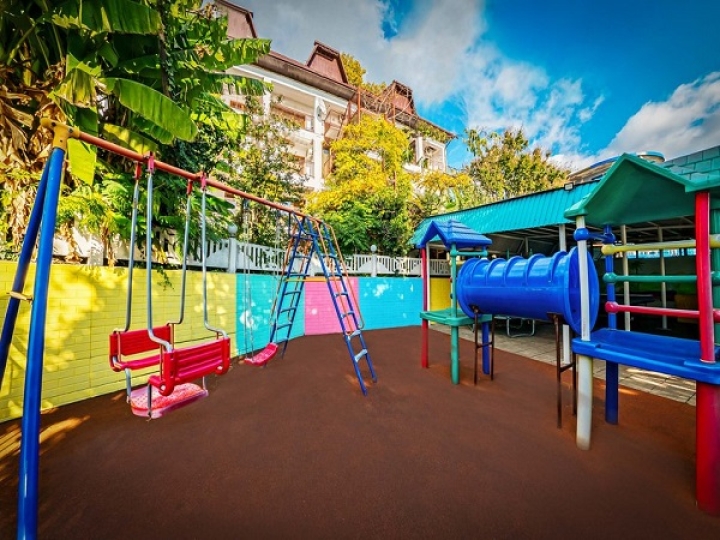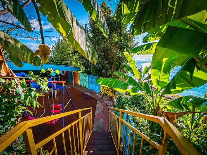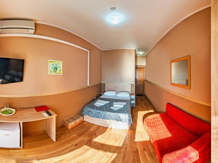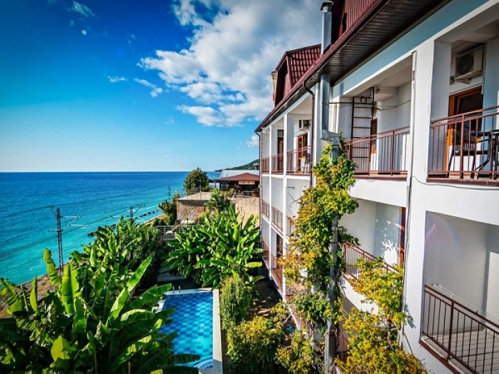 Небольшой четырехэтажный корпус находится на благоустроенный территории всего в 50 метрах от моря. Комнаты хорошо оснащены и укомплектованы: везде есть кондиционер, индивидуальный санузел, бытовая техника, балконы. Некоторые комнаты дополнительно оборудованы мини-кухней.