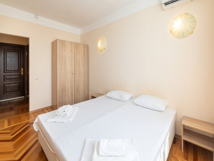 10-этажный белоснежный корпус отеля разместился на благоустроенной территории площадью 3 га, расположенной всего в 50 м от моря. Для гостей предоставляются 1-комнатные 2-местные номера «эконом».