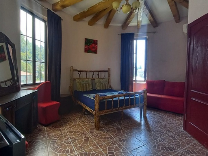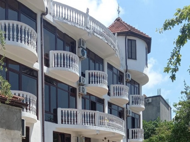 Четырехэтажный корпус отеля с белоснежными балюстрадами балконов разместился на улице, ведущей к морю. В комнатах лаконичный современный интерьер, есть кондиционер, телевизор с местными каналами, сейф, эксклюзивная мебель ручной работы из дикого дерева, на кроватях ортопедические матрасы, собственный санузел с душем, на этаже установлены холодильники, кулеры, гладильная доска с утюгом (в полулюксе холодильник в номере), у администратора можно арендовать фен, воспользоваться микроволновкой.