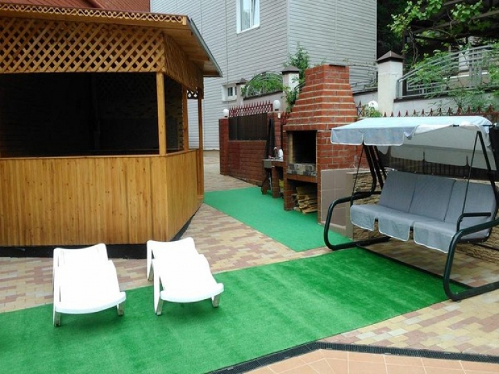 городской галечный оборудованный в 40 м от гостевого дома, лежаки и зонтики за доп. плату.